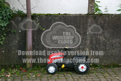 This toy tractor was parked by a wall in the German village of Scherzheim. No child in sight