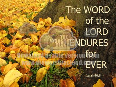 Autumn leaves and text of Isaiah 40:8