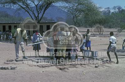 • Woman aid worker teaching African woman sewing WURCS Project Mon