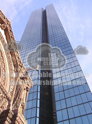 Trinity Church and the Hancock Tower in Copley Square, Boston USA