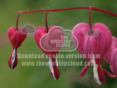 Heart shaped flowers with a small boy inspecting them closely
