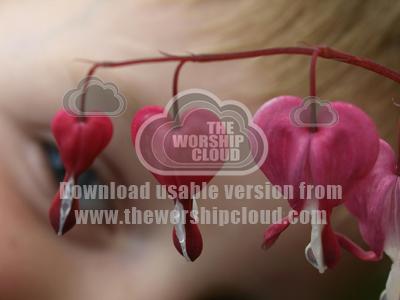Heart shaped flowers with a small boy inspecting them closely