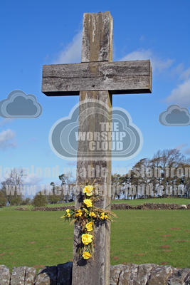 Heavenfield Cross, Northumbria with floral Easter Cross