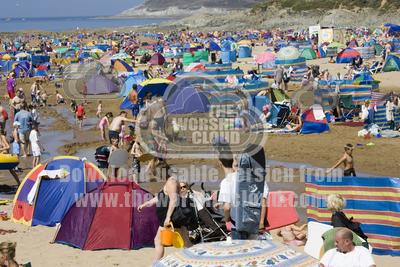 • Holidaymakers on crowded beach Oxwich Bay Gower South Wales UK