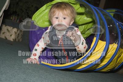 home | resources | holly aged 11 months emerging from play tunnel