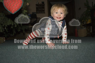 Look at me - eleven month old Holly smiling as she pauses before climbing down a step