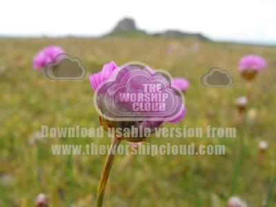 Close up of flower with Lindisfarne Castle in the background
