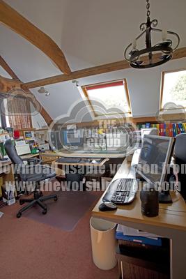 Home based IT computer office above garage in Cotswold house Woo