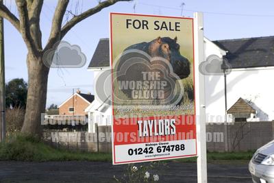 House for sale sign Relax - You're moving with Taylors Hippo picture on board Cotswolds, UK