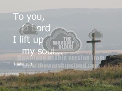 Cross and hills - text of Psalm 25.1 - powerpoint image