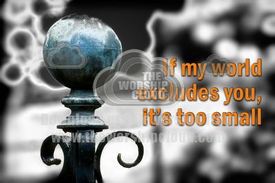 photo of decorative metal finial with text "If my world excludes you, it's too small"