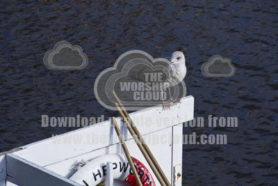 an immature Herring Gull at rest where the old lifeboat sets out from