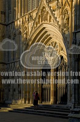 A lady humbled by the greatness of the majestic spectacle of York Minster