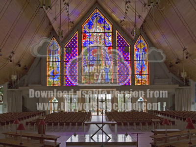 Stained glass window and interior of Holy Trinity Cathedral, Auckland Holy Trinity Cathedral, Parnell, Auckland.