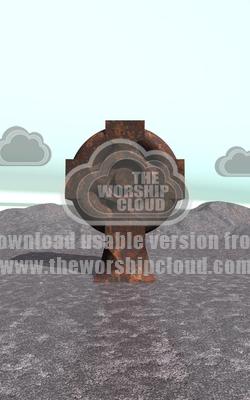 Rusty iron Celtic Cross on a bleak landscape.