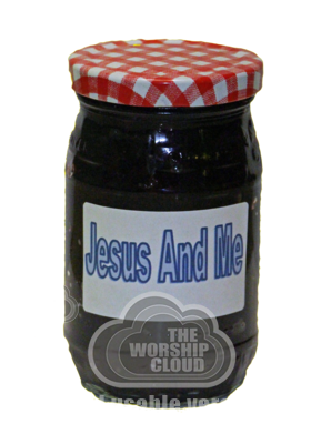 A jar of jam bearing the label "Jesus And Me" - a play on words