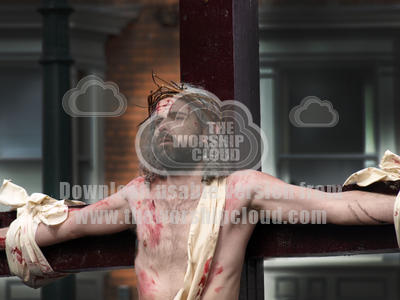 Jesus on the cross, wearing a crown of thorns...as enacted at the Beverley Passion play