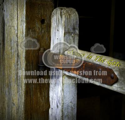 Close up of old hinge on a gate with text