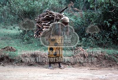 Kenyan woman carrying bundle of fuelwood