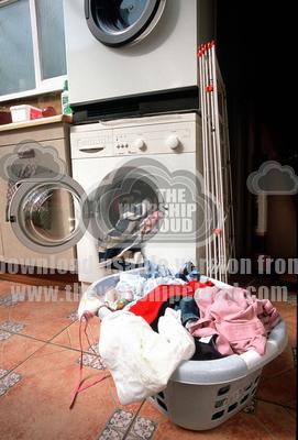 home | resources | laundry waiting to be loaded into washing machine, uk