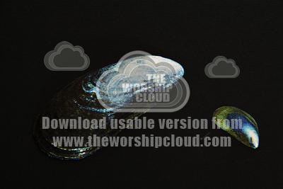 A well worn Mussel shell with a shiny little one