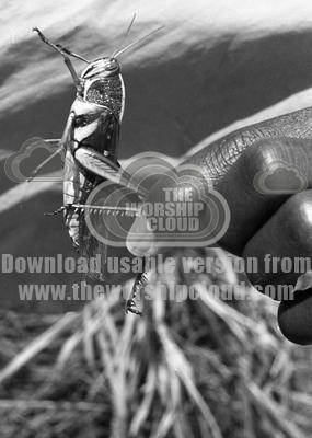 A close up of a locust, with adult human hand to show scale