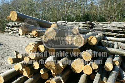Piled tree trunks in timber yard, Kent