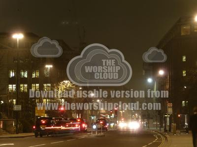 A series of taxis paused at the lights, captured on a slow shutter speed.