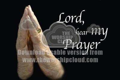 Ideal image for PowerPoint Slide. Praying hands with the text 'Lord, hear my prayer'.