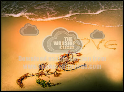 A beach with the word LOVE written on the sand.
