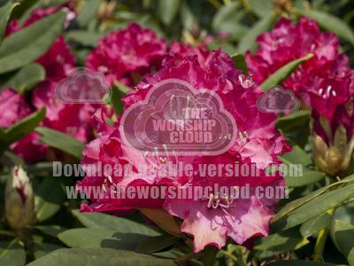 Freshly opened red rhododendron flowers