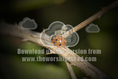 Slowly making its way up a dead rose branch is a lovely six spot ladybird
