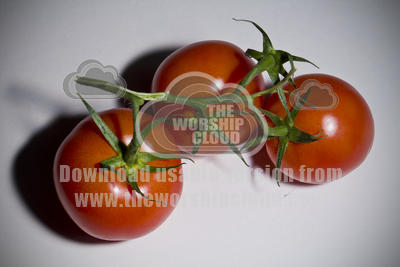 Three ripe and delicious looking juicy red tomatoes on the vine