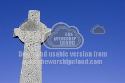 • St John's celtic cross outside Iona Abbey off south coast of Isl