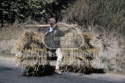 home | resources | man carrying two bales of rice straw on yoke bhaktapur nepal