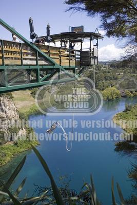 home | resources | man diving from cantilever platform at taupo bungy into waikato