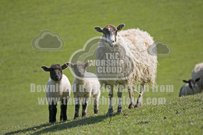 home | resources | masham ewe sheep with twin lambs in green field cotswolds uk