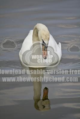 A splendid looking male mute swan admires his reflection