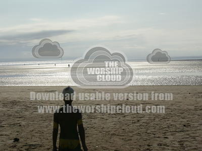 This man of metal stands up to his hips in sand still gazing defiantly out across the vast sea. He has suvived the elements sand, and sea, summer, winter, wind, rain, and blazing sun. This scene was captured on digital camera by Audrey Hogan September 2008