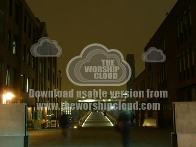 Night shot across to the Tate Modern, with blurred walkers in frame.