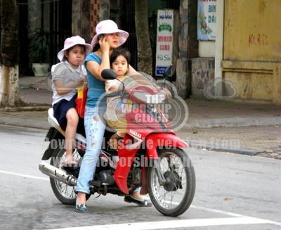Vietnam. Typical sight, but this lady talked on the phone for several changes of traffic lights. The other traffic rode around her - no problem. Multiple occupancy of a moped is very common, with anything up to 5 persons aboard.