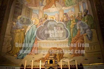 • Mosaic of infant Christ in the temple, Lourdes Basilica, France