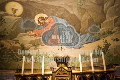 Mosaic of Christ in Garden of Gethsemane asking His Father to let this cup pass from me, , Lourdes Basilica, France