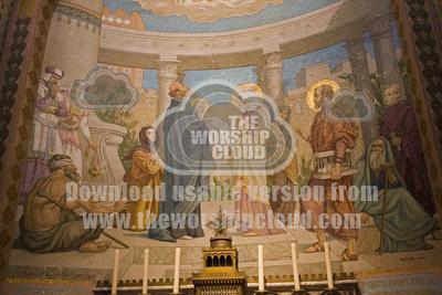 • Mosaic of the boy Christ teaching in the temple, Lourdes Basilic
