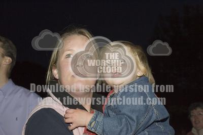 Mother and baby watching bonfire & fireworks on Dovers Hill, Cot