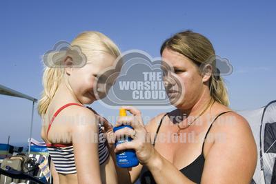 home | resources | mother applying sun protection lotion on shoulders of young blon