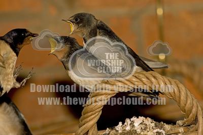 home | resources | mother feeding two young swallows perched on basket handle cotsw