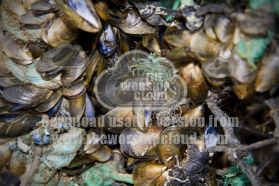A lobster cage that has seen a lot of life encrusted with hundreds of Mussel shells