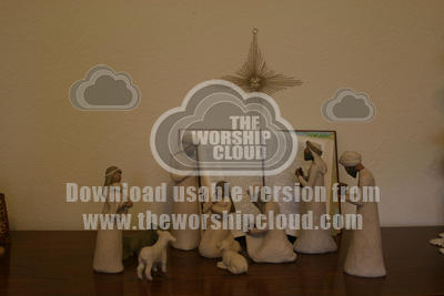 Small nativity scene laid out on sideboard