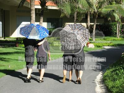 Waitresses at the Vin Pearl Resort going to work in the heat of the afternoon. Vietnam